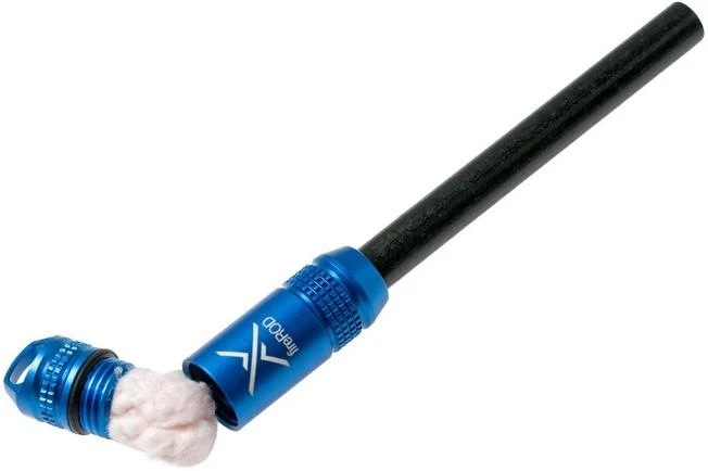 The Benchmade Exotac FireROD XL is a large fire starter. The magnesium rod gives you sparks of 3000 degrees Celsius which, because of the addition of ferrocerium, will burn for a longer period of time. The removable parts are protected by the o-rings against moisture and other influences. If necessary you can also replace the rod. The handle the rod is screwed into is made from anodized aluminium. This handle also serves as a container for tinder. This container is filled with a very flammable piece of cotton wool.
