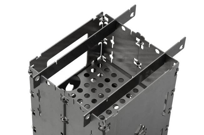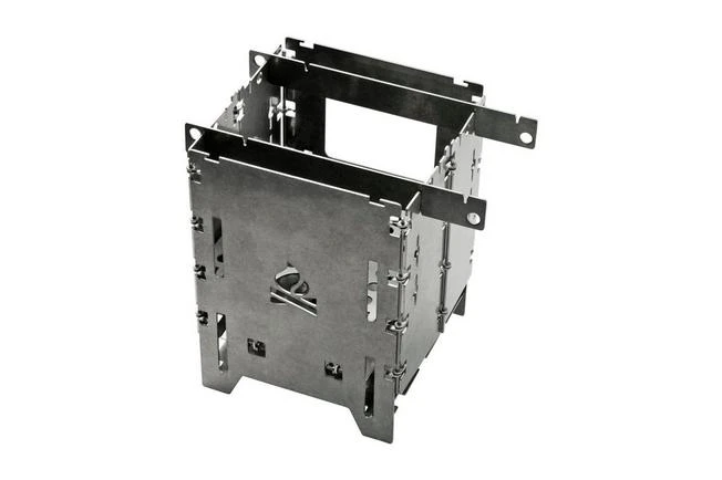 The Bushcraft Essentials Bushbox LF Set is a complete kit with stove, grill plate and solid storage bag. The great thing about this stove is that it is so easy to assemble. The only thing you have to do is fold it open. Within seconds it will be good to go, enabling you to start your fire. You only need a little fuel to cook, the air supply is namely incredibly efficient. Also, the sides properly protect your fire from the wind. This Bushbox works with branches and biomass, but you can also use it with a methane burner. From Trangia, for instance. But that is not all. The Bushbox can also handle Esbit blocks, charcoal and much more.