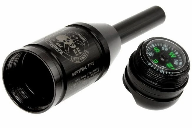 This firestarter offers just a bit more than many other firestarters. The swab is thicker than usual with many other firestarters. This means it’s very durable. Thanks to the handle, it is comfortable in your hand. The inside of the handle accommodates to, for example, some flammable material and is waterproof. Inside the screw cap you find a small, but functional compass. Also the outside of the firestarter is put to good use: there is a number of useful survival tips printed on the outside. Of course, the firestarter can be attached to your equipment with, for example, paracord. Also a plastic card with survival tips is included in delivery.