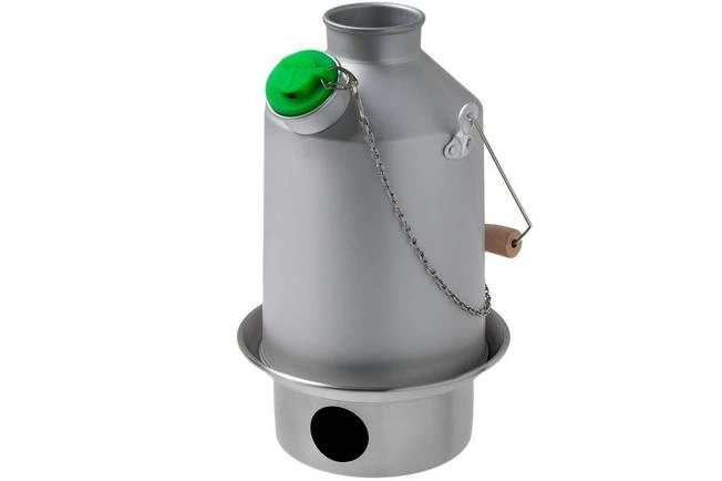 The Kelly Kettle Scout is a fast kettle for outdoor use. It excels in terms of speed, and the limited amount of fuel it needs. A couple hands full of branches, dry grass, pine cones or other fuel is enough to boil 1.2 litres of water in mere minutes. Great when you go camping, fishing and hiking, but also in your backyard for that outdoor experience.
