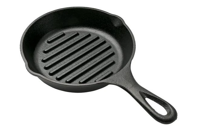 The Lodge Cast Iron Grill L3GP is a relatively small cast iron grill pan. Great for small snacks or when directly serving one-pot meals. The stripes in the base of the pan nicely sear the meat. With the recognizable stripes and grill flavour as a result!