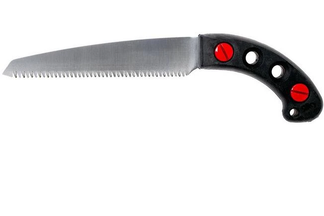 The Silky Gomtaro is a practical, fixed pruning saw. You use it to prune trees and shrubs. Because it has a fixed blade you don’t have to worry about it closing when you don’t want it to. In addition, when you have a fixed Silky blade you can perfectly align the shape and the ratio between the handle and the blade. Some believe that that is why the Gomtaro is even better to work with.